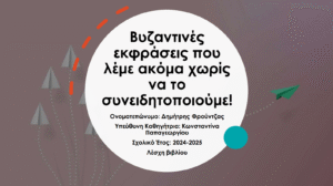 αφιερώματα Βυζαντινές εκφράσεις που λέμε ακόμα και χωρίς να το συνειδητοποιούμε Δείτε Περισσότερα 28 Απριλίου 2025 Δεν υπάρχουν Σχόλια