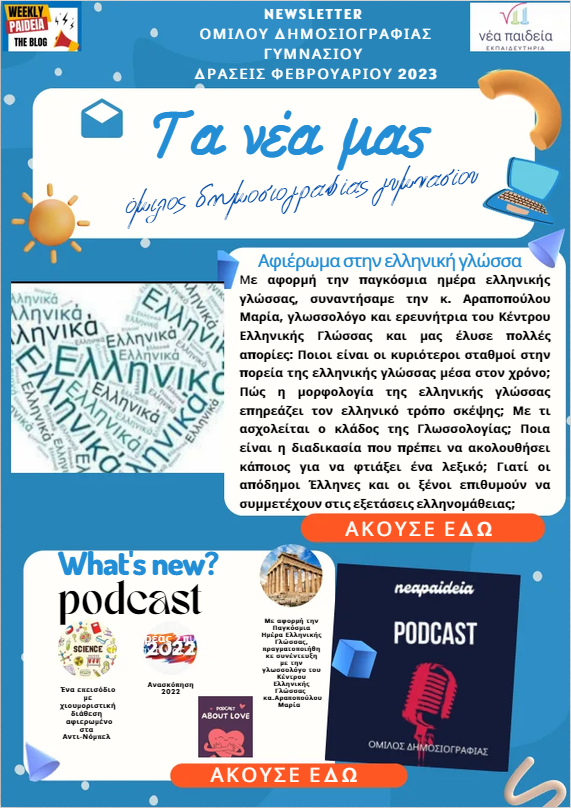 Τα νέα μας! Μια πρωτότυπη διαδραστική εφημερίδα του ομίλου δημοσιογραφίας!