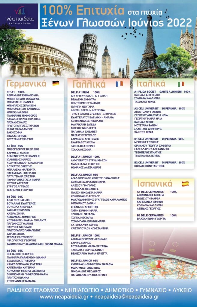 100% Επιτυχία στα πτυχία της 2ης Ξένης Γλώσσας!