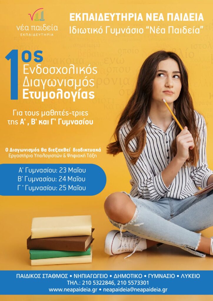 Με επιτυχία εξελίσσεται ο 1ος Ενδοσχολικός Διαγωνισμός Ετυμολογίας που διοργανώνουν τα Εκπαιδευτήρια Νέα Παιδεία, στο πλαίσιο του μαθήματος της Αρχαίας Ελληνικής Γλώσσας. Σκοπός του Διαγωνισμού είναι να καλλιεργηθεί η αίσθηση οικειότητας των μαθητών προς την αρχαία ελληνική γλώσσα συνειδητοποιώντας τη διαχρονική της εξέλιξη και τη σύνδεσή της με τη νέα ελληνική γλώσσα. Στον Διαγωνισμό λαμβάνουν […]