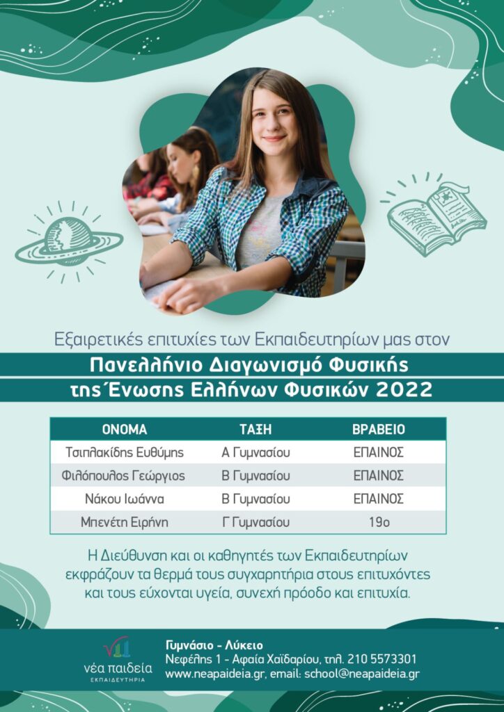 Μεγάλες επιτυχίες στον Πανελλήνιο Διαγωνισμό Φυσικής «Αριστοτέλης» 2022