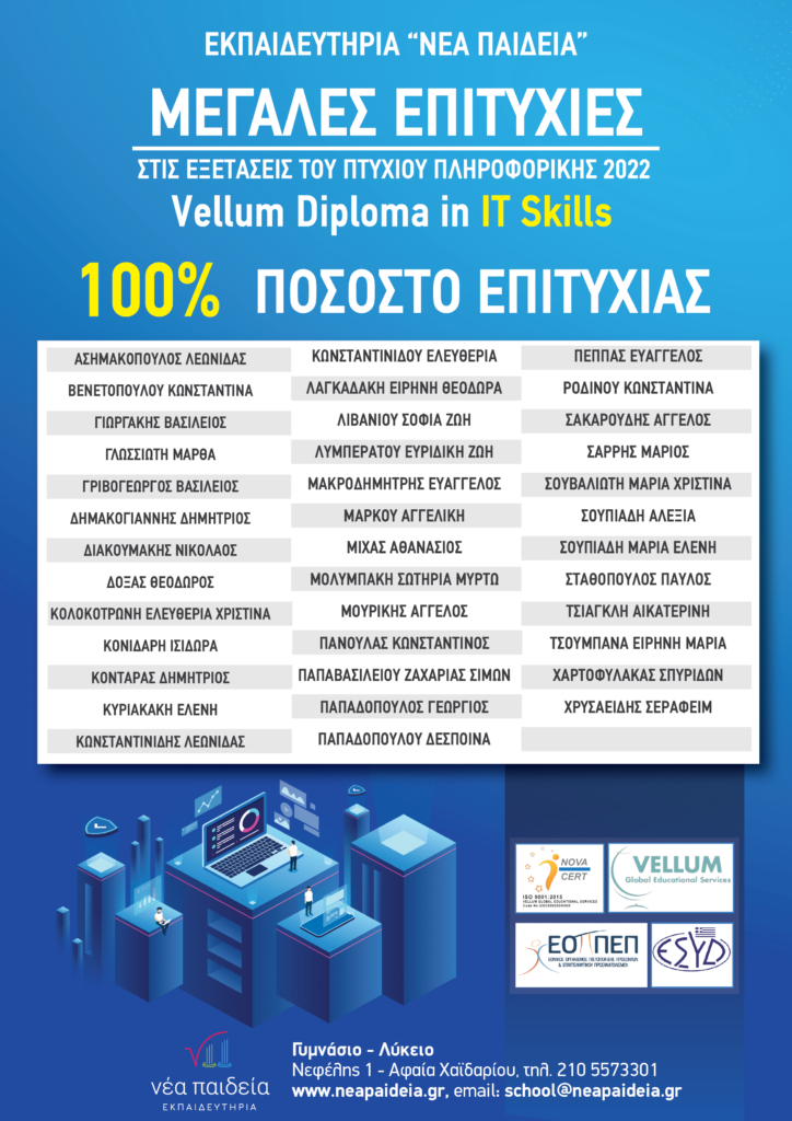 100% Επιτυχία στα Πτυχία Πληροφορικής