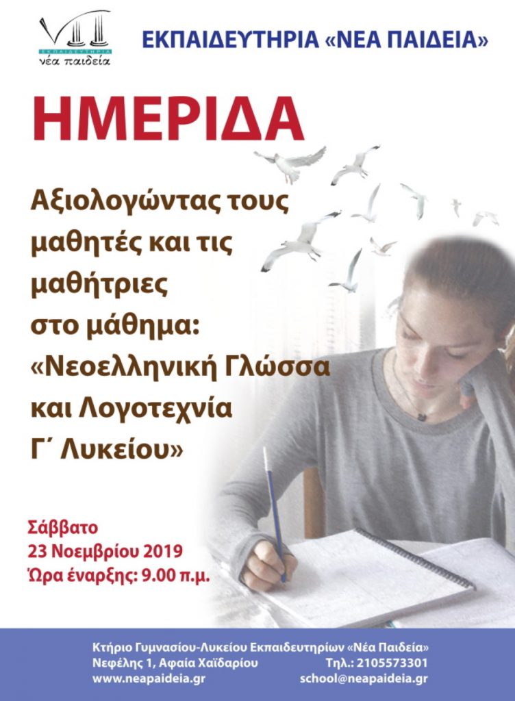Εκπαιδευτική Ημερίδα και Εργαστήρια: Αξιολογώντας τους μαθητές και τις μαθήτριες στο μάθημα: «Νεοελληνική Γλώσσα και Λογοτεχνία Γ΄ Λυκείου»