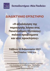 Ημερίδες Διαδικτυακό Εργαστήριο: «Η αξιολόγηση της παραγωγής λόγου στις Πανελλαδικές Εξετάσεις: παλαιά προβλήματα και νέες προκλήσεις» Διαβαστε Περισσοτερα » 23 Μαρτίου 2022