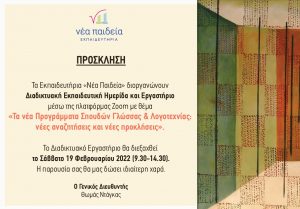 Ημερίδες Διαδικτυακό Εργαστήριο: «Το ερμηνευτικό σχόλιο και η αξιολόγησή του» Διαβαστε Περισσοτερα » 23 Μαρτίου 2022
