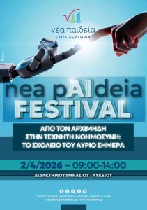 Ημερίδες nea pΑΙdeia FESTIVAL:«Από τον Αρχιμήδη στην Τεχνητή Νοημοσύνη: Το Σχολείο του Αύριο Σήμερα» Διαβαστε Περισσοτερα » 20 Μαρτίου 2026