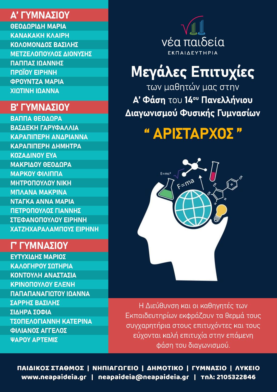 Συγχαρητήρια στους μαθητές και τις μαθήτριές μας που διακρίθηκαν στον Πανελλήνιο Διαγωνισμό Φυσικής Γυμνασίων!Συγχαρητήρια επίσης στους εκπαιδευτικούς και στις οικογένειές τους για τη στήριξη και την ενθάρρυνση.