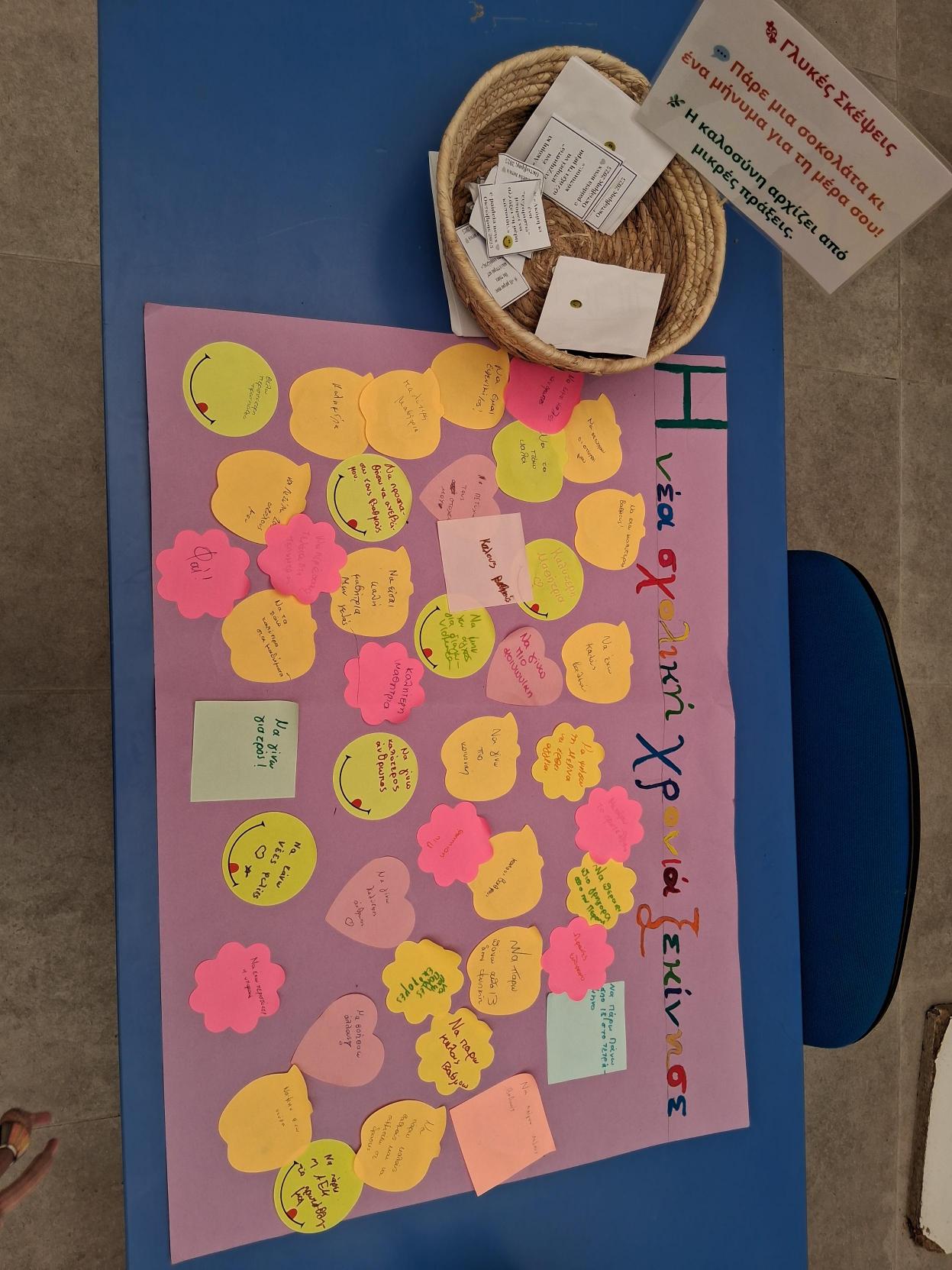 Η δράση θα προσφέρει σε όλους τους μαθητές την ευκαιρία να εκφράσουν σκέψεις, συναισθήματα και ιδέες με τον δικό τους μοναδικό τρόπο, γράφοντας τη σκέψη τους, κολλώντας το χαρτάκι τους ή ζωγραφίζοντας την ιδέα τους.