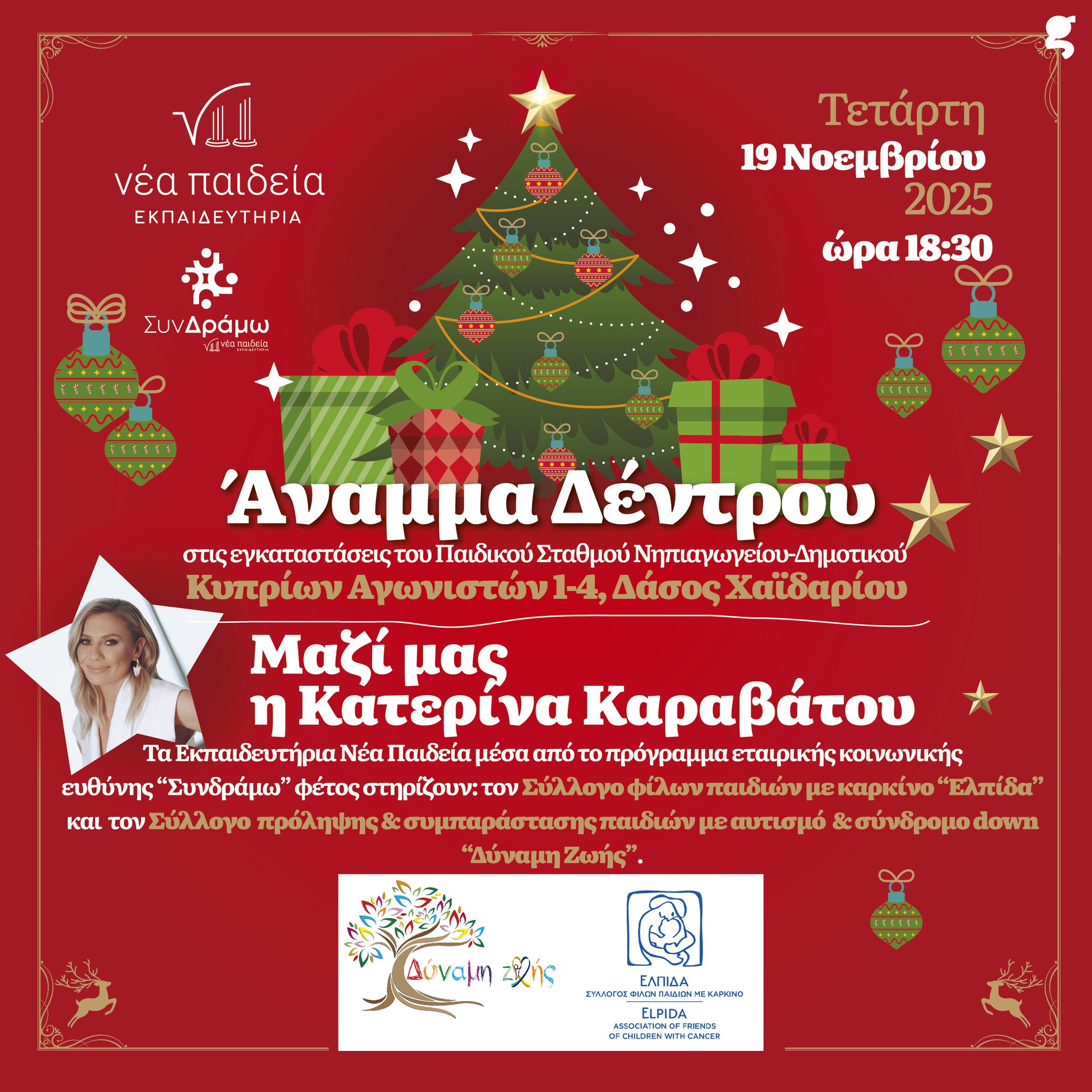 Την Τετάρτη 19 Νοεμβρίου 2025 στις 18:30, στις εγκαταστάσεις του Παιδικού Σταθμού – Νηπιαγωγείου – Δημοτικού, τα Εκπαιδευτήρια Νέα Παιδεία υποδέχονται επίσημα τη γιορτινή περίοδο με τη λαμπερή τελετή Ανάμματος του Χριστουγεννιάτικου Δέντρου!