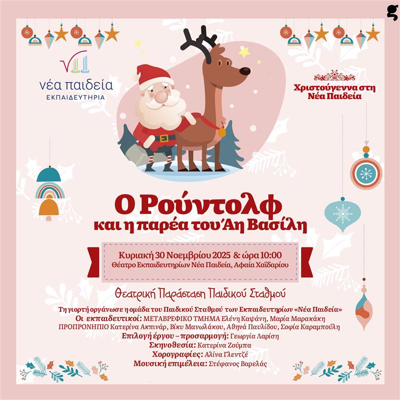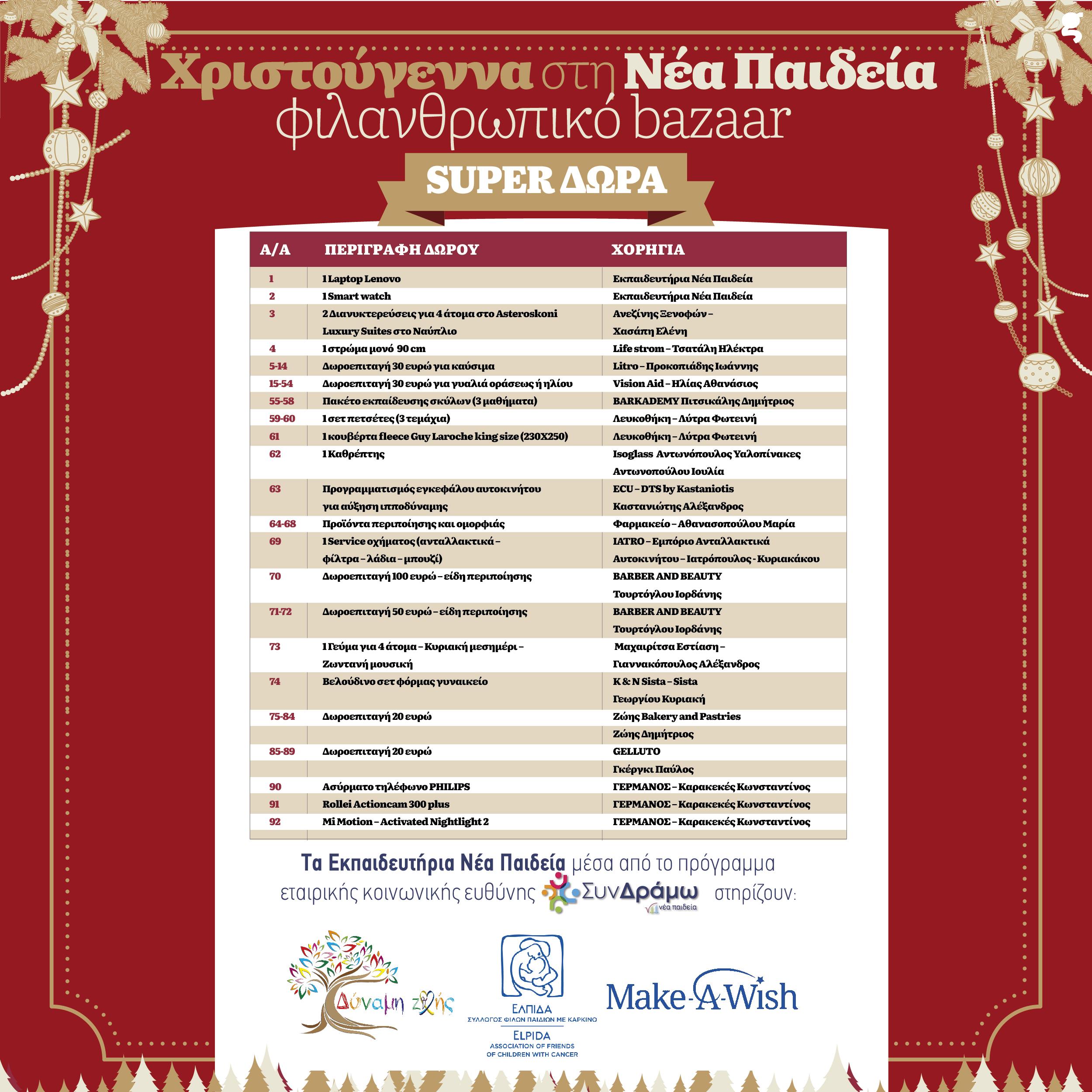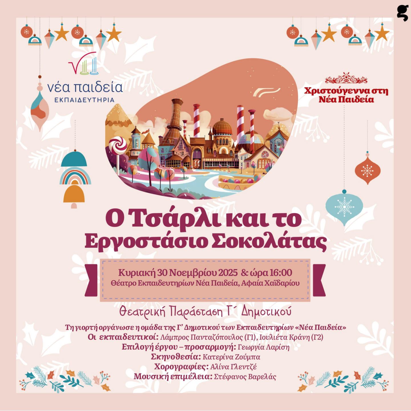 Με χαρά και γιορτινή διάθεση, σας προσκαλούμε στο φιλανθρωπικό bazaar που διοργανώνουν τα Εκπαιδευτήρια Νέα Παιδεία το Σάββατο 29 και την Κυριακή 30 Νοεμβρίου 2025, στο Θέατρο του Γυμνασίου–Λυκείου.